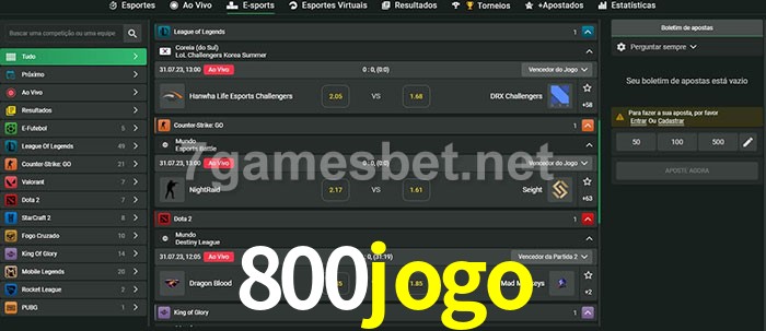 O 800jogo oferece uma grande seleção de opções de apostas em e-sports com probabilidades competitivas
